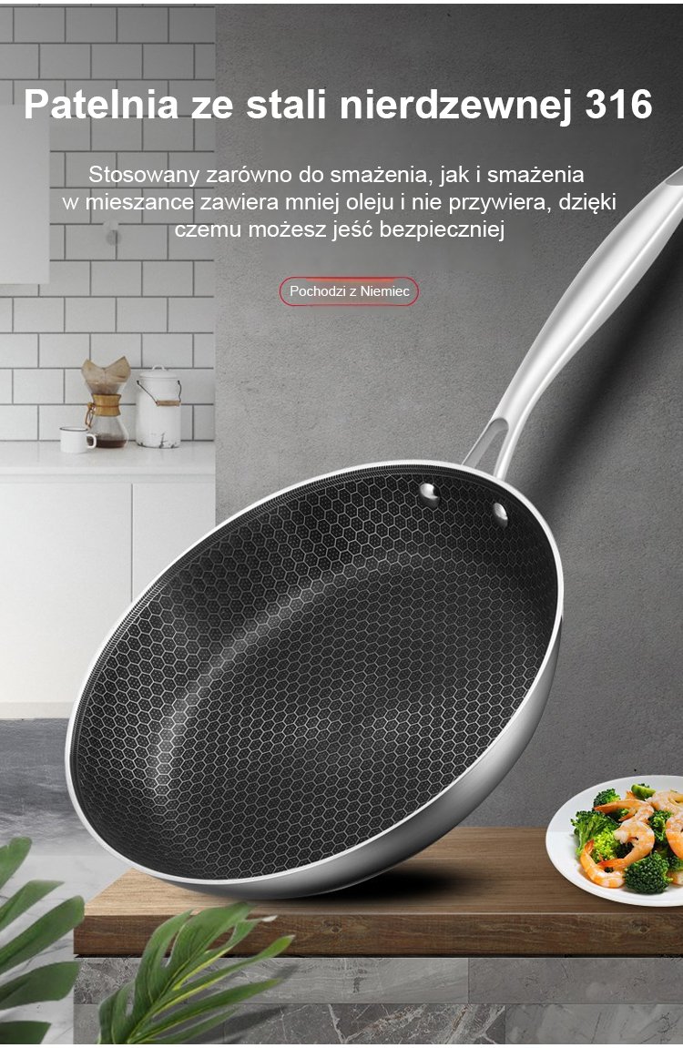Patelnia ze stali nierdzewnej o strukturze plastra miodu z nieprzywierającym dnem bez powłoki